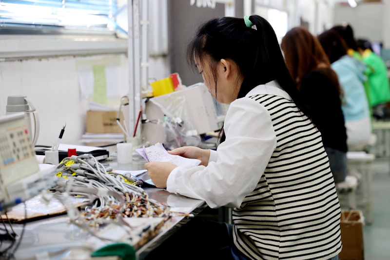 剥线皮、分铜丝、剪铝箔……10月20日,记者在海鑫精密生产车间看到,机器快速飞转,流水线两旁的工人正在忙碌作业。一根根纤细的数据线,经过几十道工序加工,由这里发往新加坡、韩国、日本、澳洲、欧美等世界各地。海鑫精密年产5000万条安防设备互联产品,供应海康威视、大华股份、中兴通讯、三星通讯、郑州宇通重工等国内外知名企业。“现代人的安全意识逐渐提高,监控摄像头走进千家万户,海康威视、大华股份是国内数一数二的安防监控设备制造企业,十台监控摄像头就有五台是海康威视、大华股份的,可见它们的普及率。我们这里从线到壳,围绕智能安防设备制造拥有较为完整的产业链,与海康威视、大华股份形成了战略合作伙伴关系。”海鑫精密负责人告诉记者。